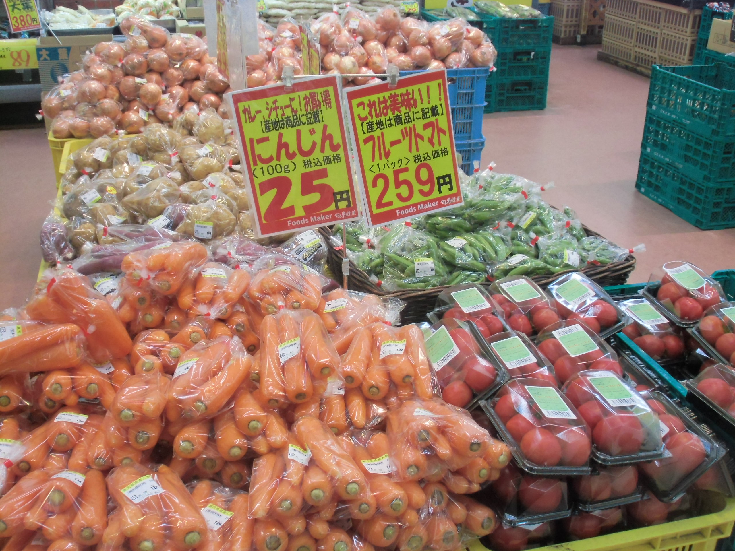 各店店長がその日届いた新鮮野菜やくだもの情報を掲載。上部にあるものから順番に新しい情報です。