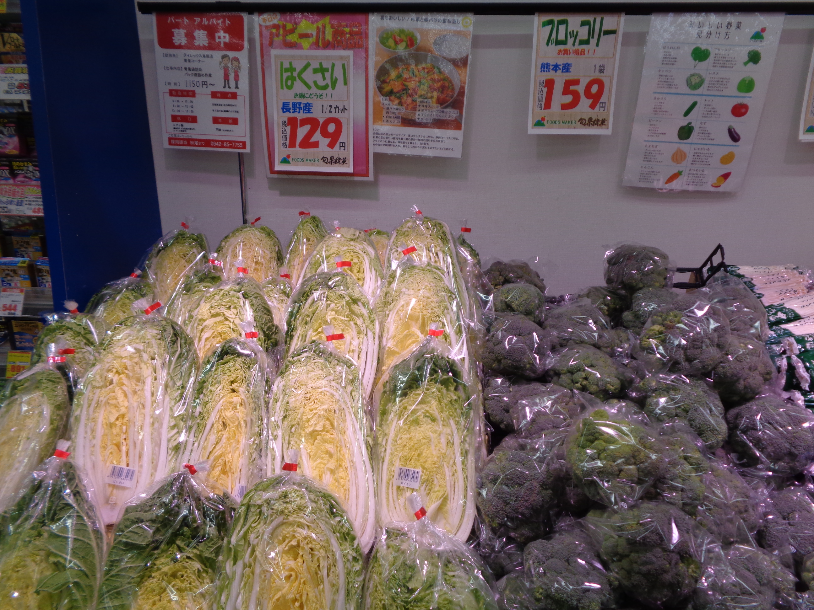 各店店長がその日届いた新鮮野菜やくだもの情報を掲載。上部にあるものから順番に新しい情報です。