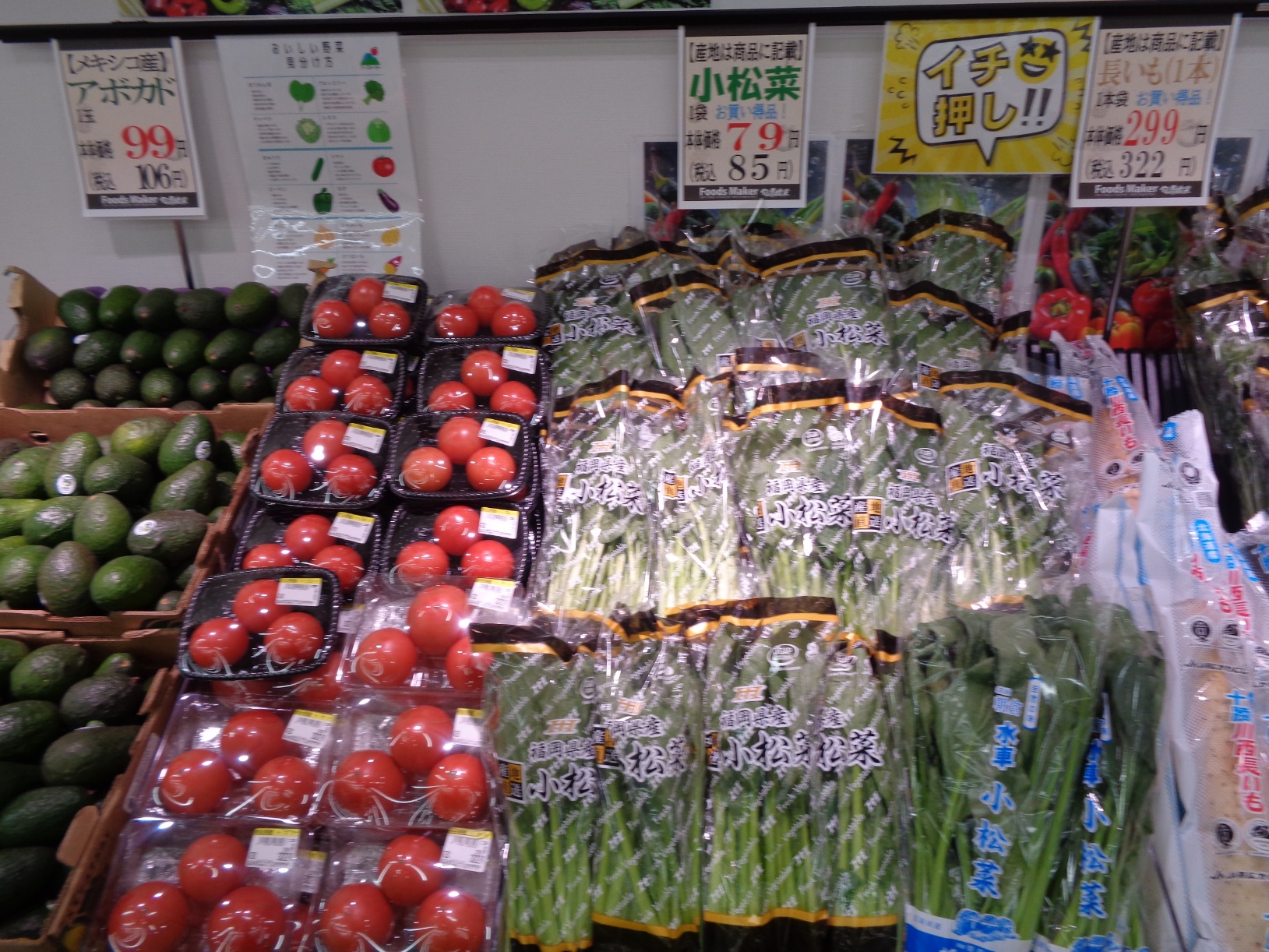 各店店長がその日届いた新鮮野菜やくだもの情報を掲載。上部にあるものから順番に新しい情報です。