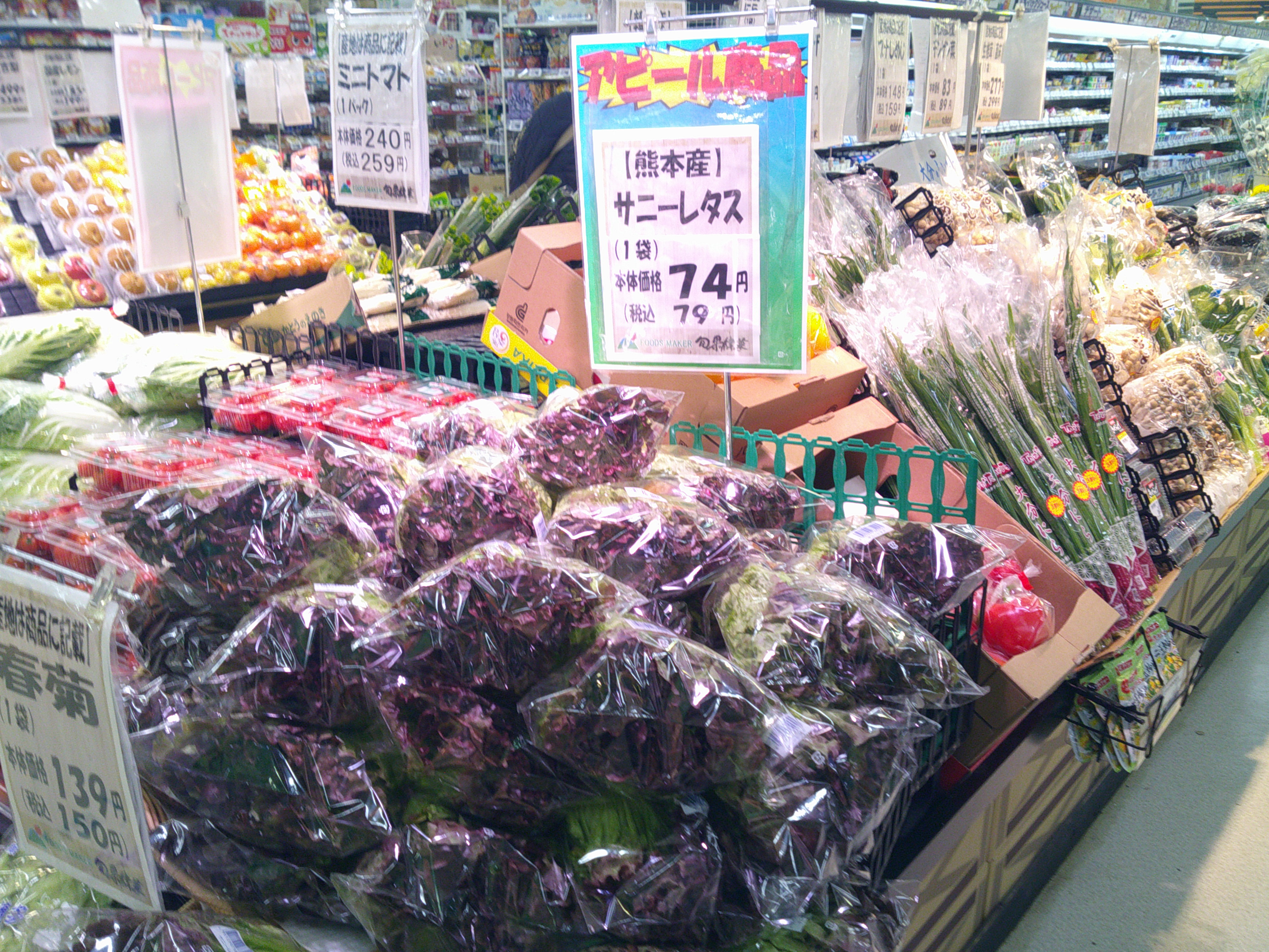 各店店長がその日届いた新鮮野菜やくだもの情報を掲載。上部にあるものから順番に新しい情報です。