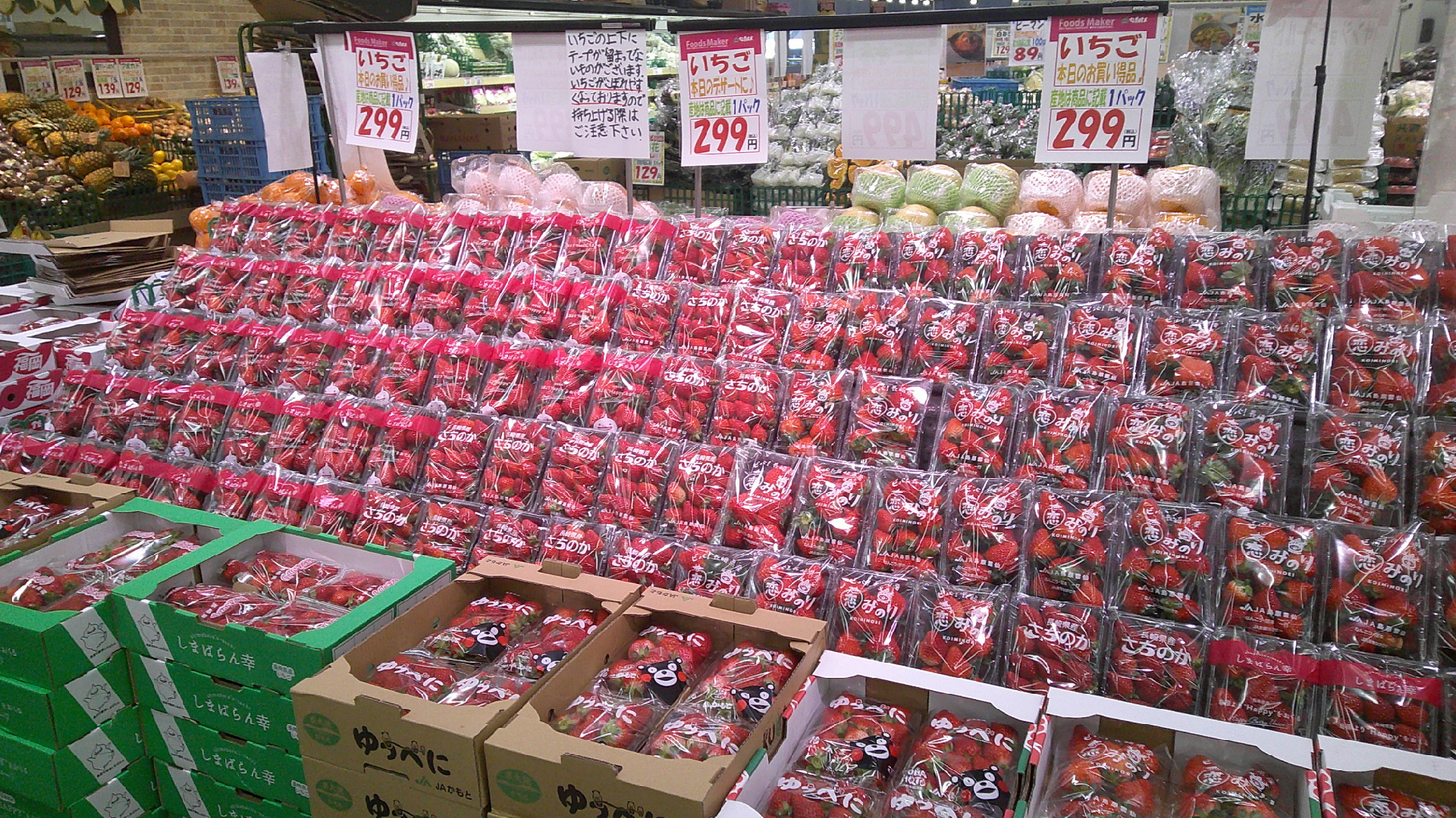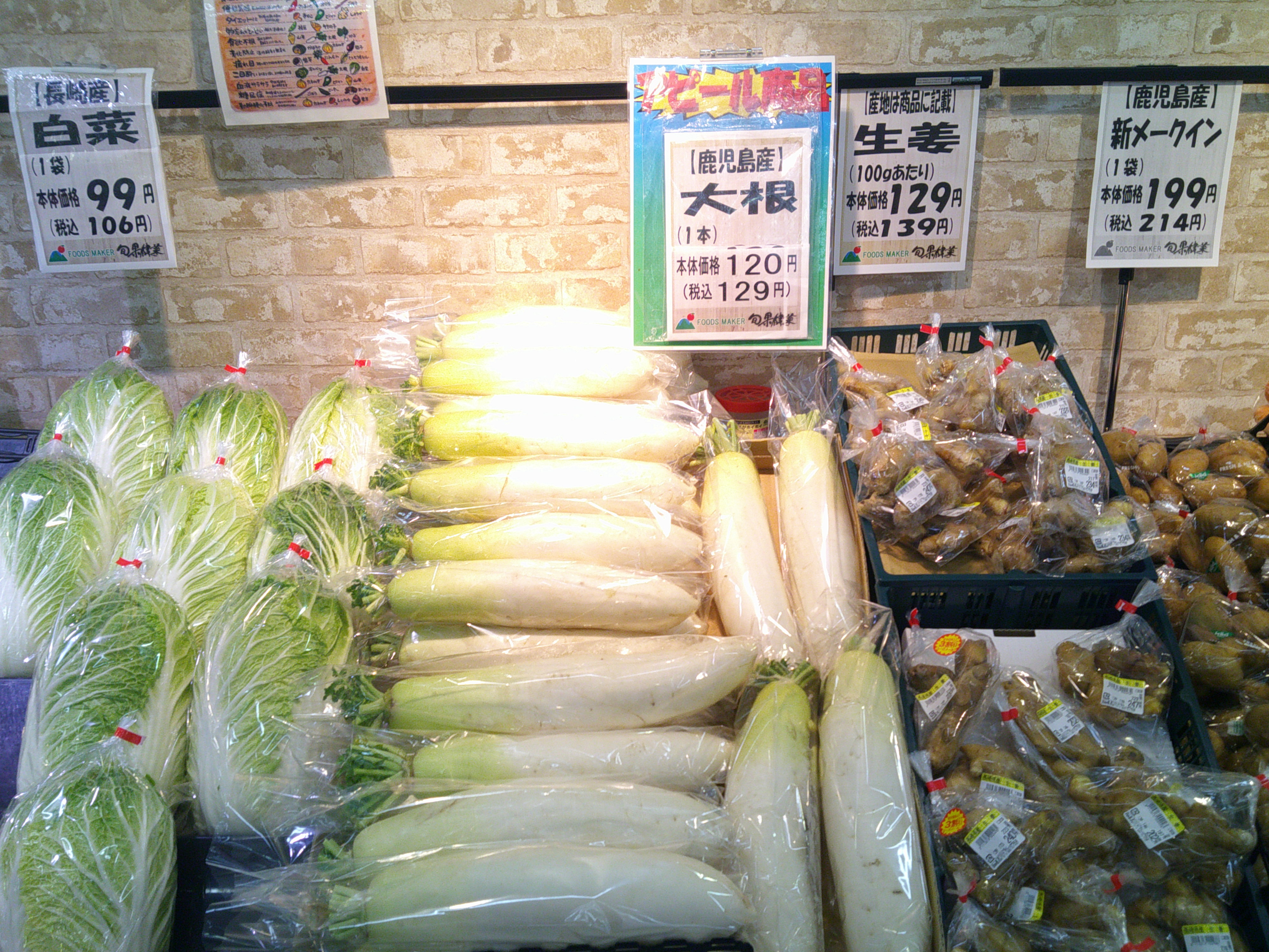 各店店長がその日届いた新鮮野菜やくだもの情報を掲載。上部にあるものから順番に新しい情報です。