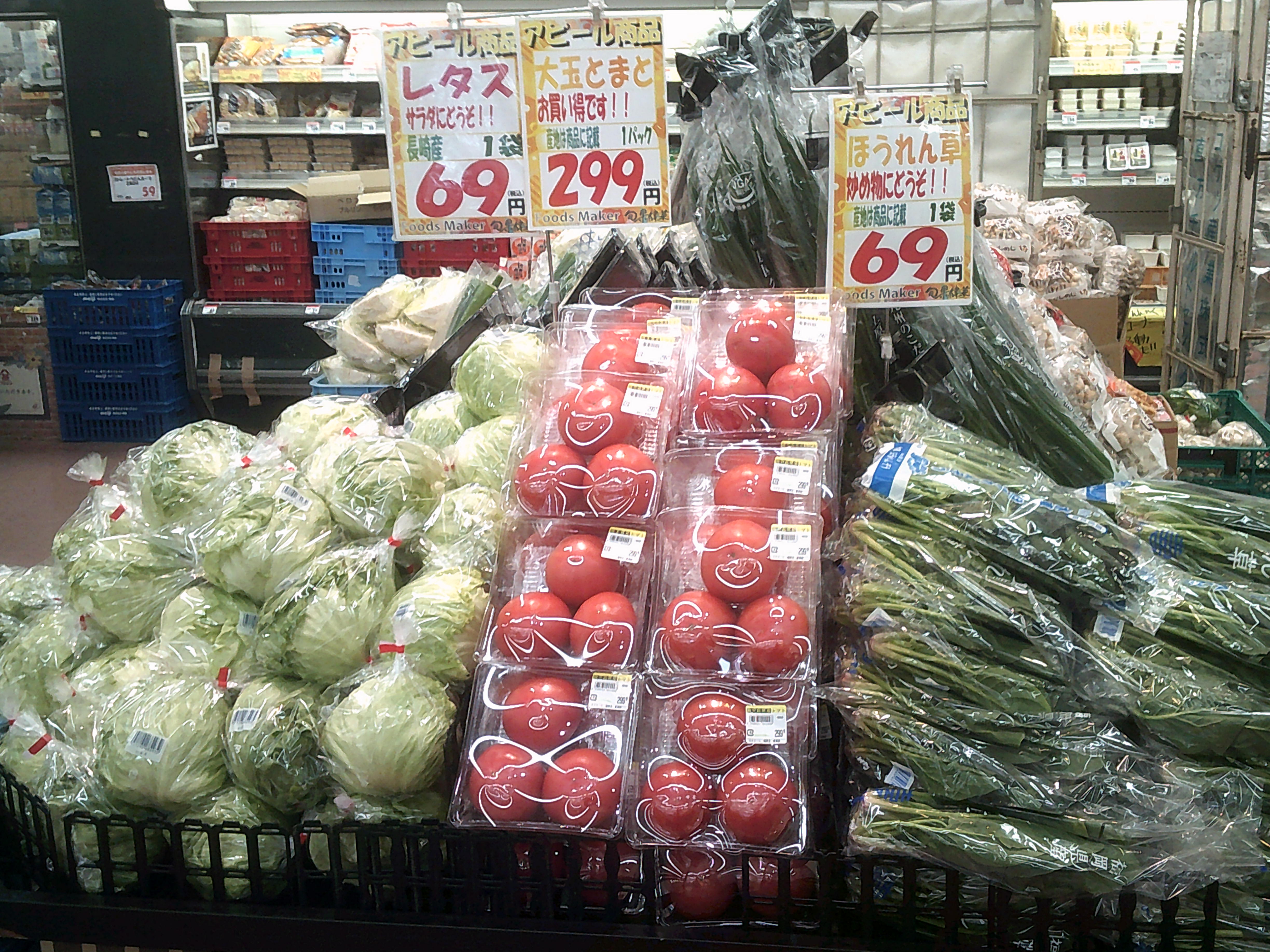 各店店長がその日届いた新鮮野菜やくだもの情報を掲載。上部にあるものから順番に新しい情報です。