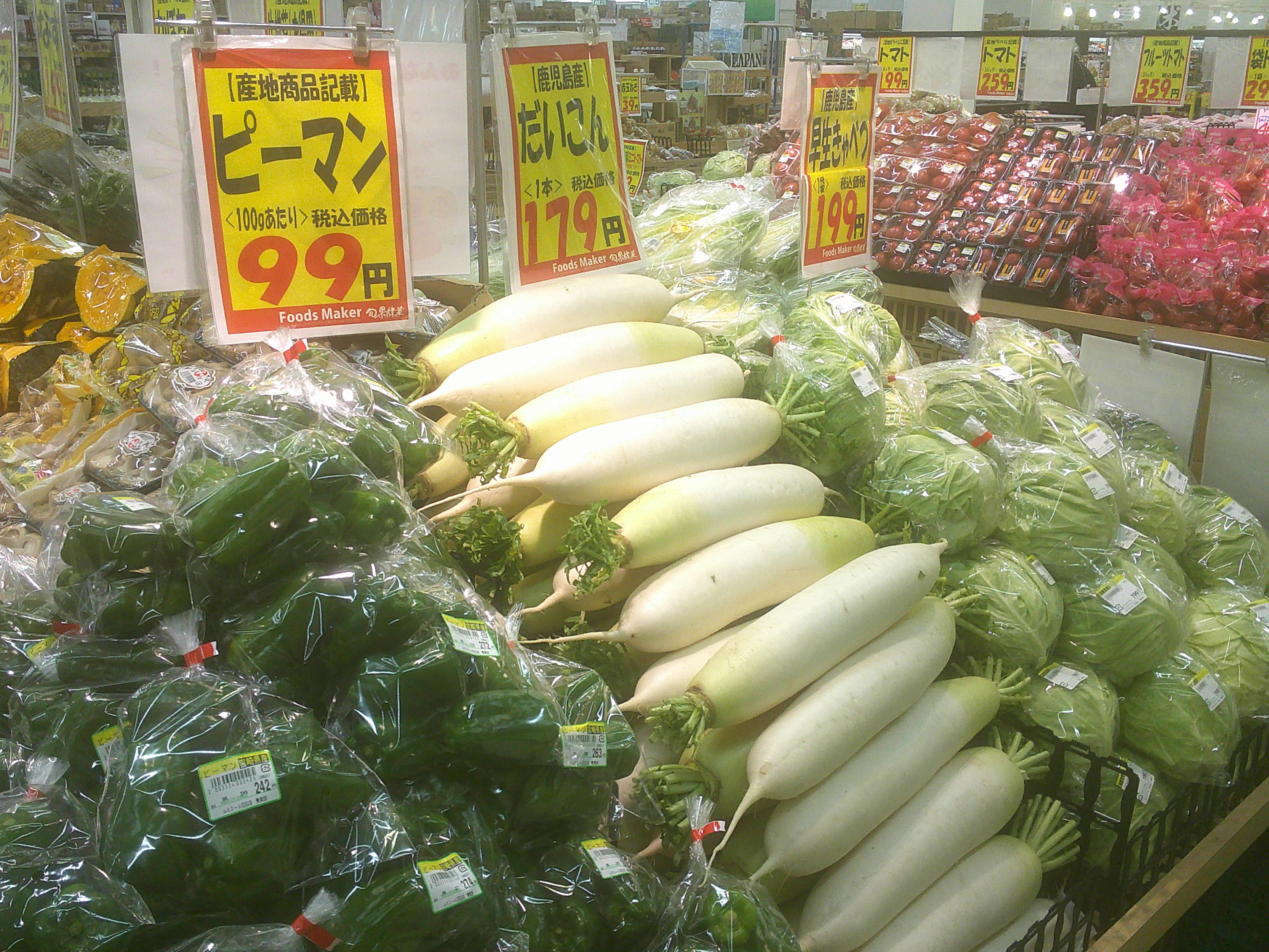 各店店長がその日届いた新鮮野菜やくだもの情報を掲載。上部にあるものから順番に新しい情報です。