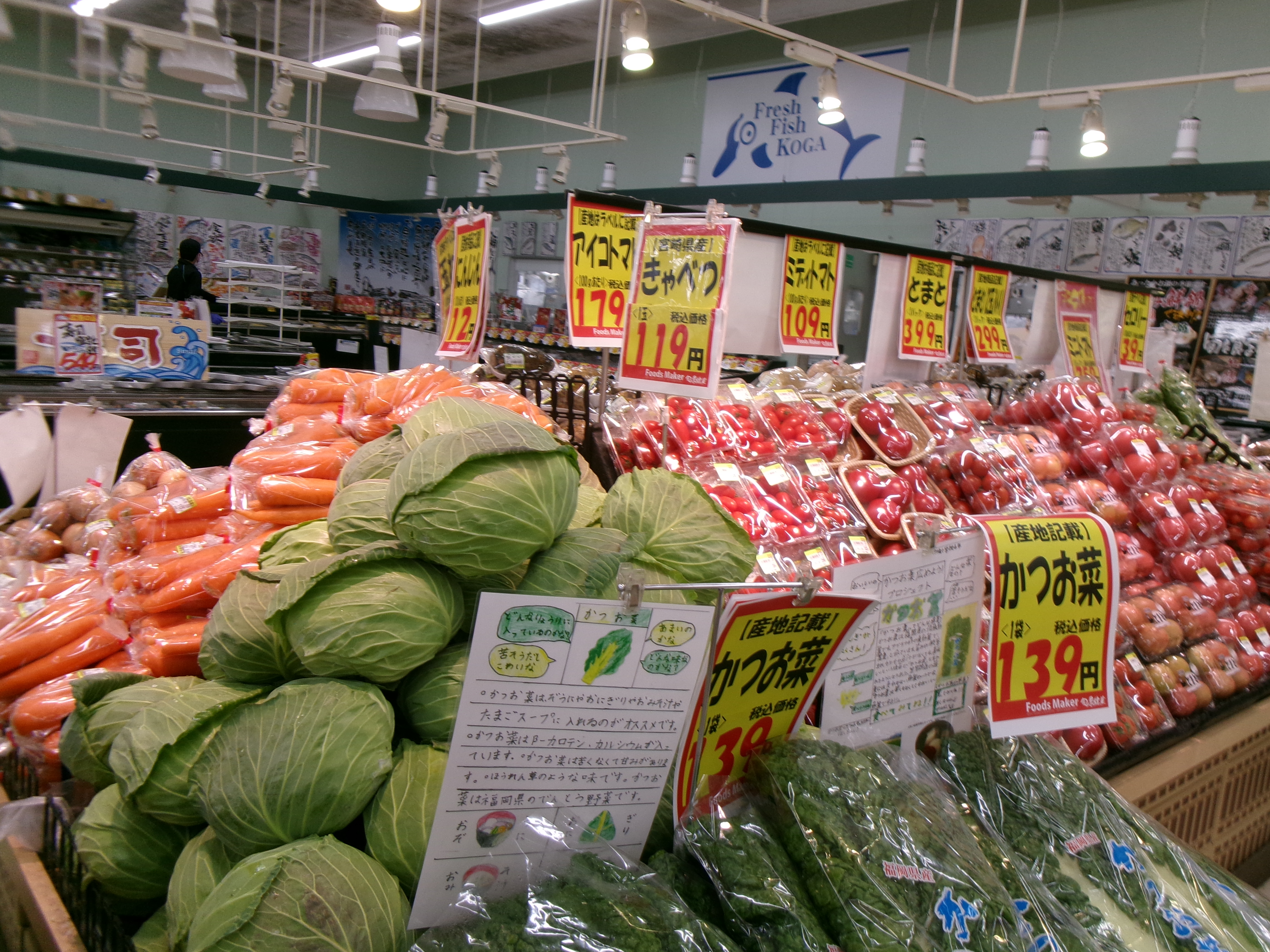 各店店長がその日届いた新鮮野菜やくだもの情報を掲載。上部にあるものから順番に新しい情報です。